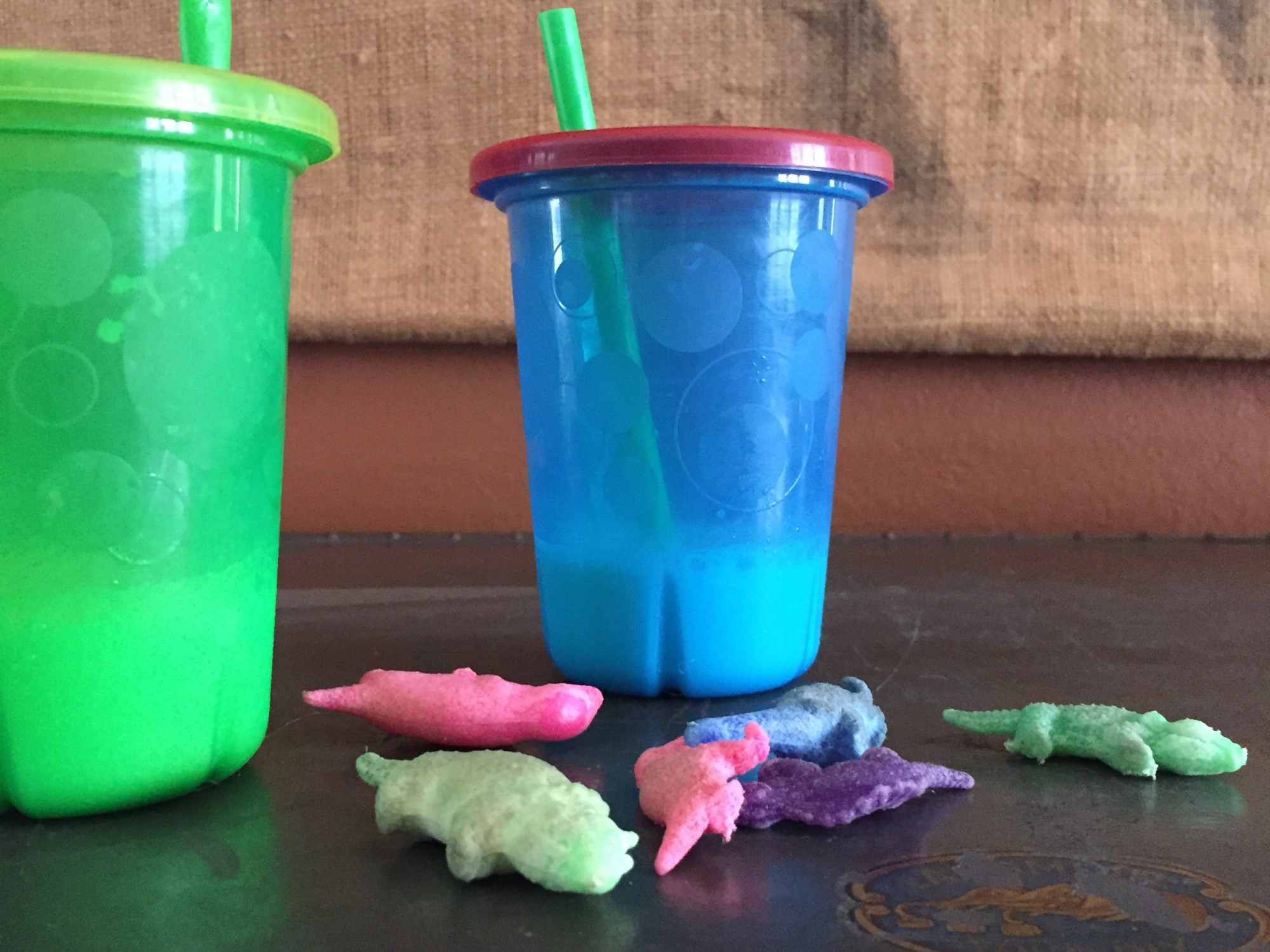 We have these tiny dinosaurs that grow when you put them in water and then shrink back as they dry. We decided, this time, to dry half of them in their usual spot on the kitchen counter and set the other half outside to see which shrank faster. Once the kids were through marveling over how quickly the ones in the sun returned to their regular size (#sciencemagic), they grabbed them all and ran off into the living room to give things dinosaur bites.