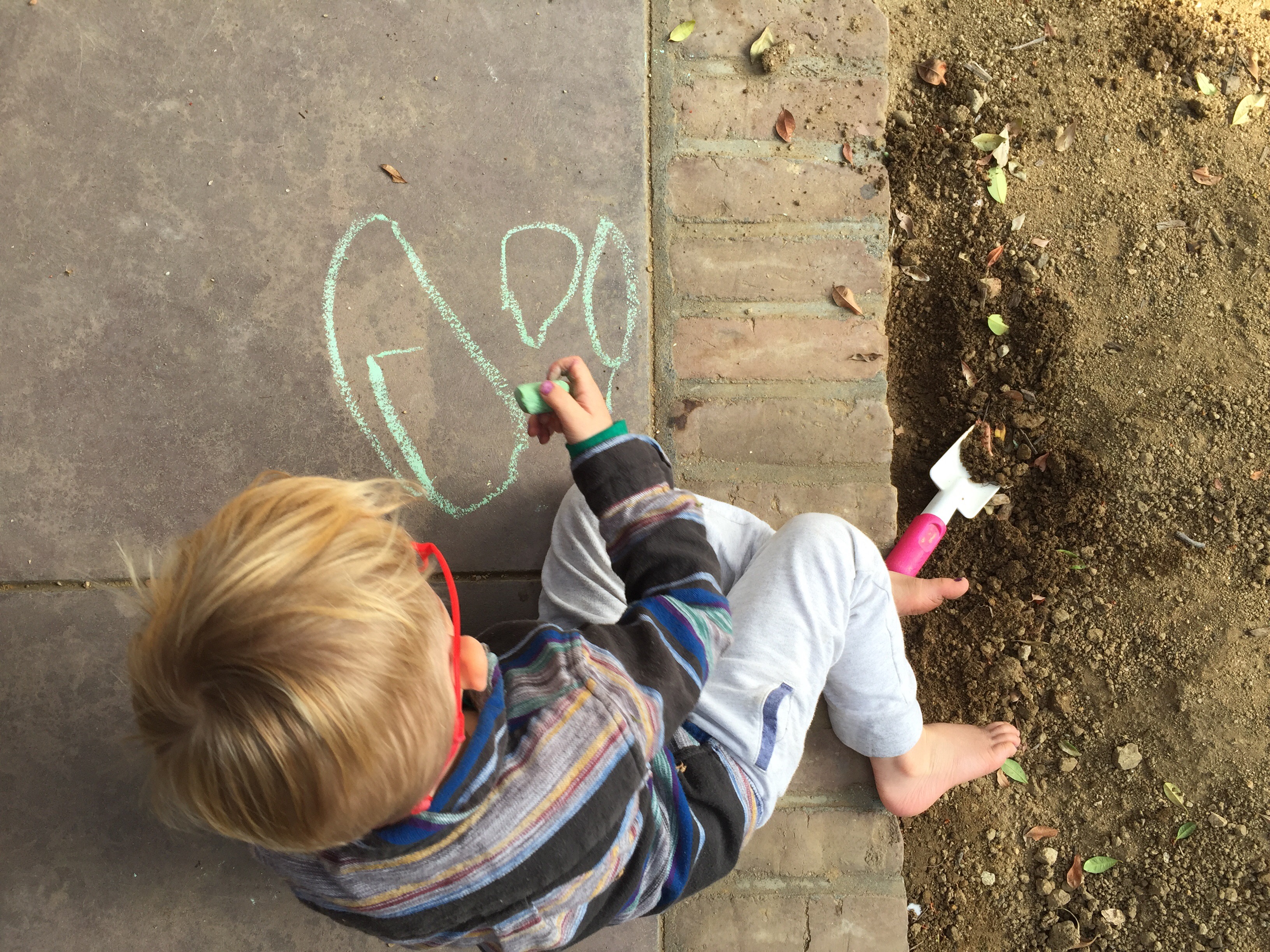So, I’m going to stay here with my feet up, watching the Bug draw with sidewalk chalk, because they’re getting it. They’re learning exactly what they need to learn and I trust that they will keep solving new problems as long as I can stay out of their way.