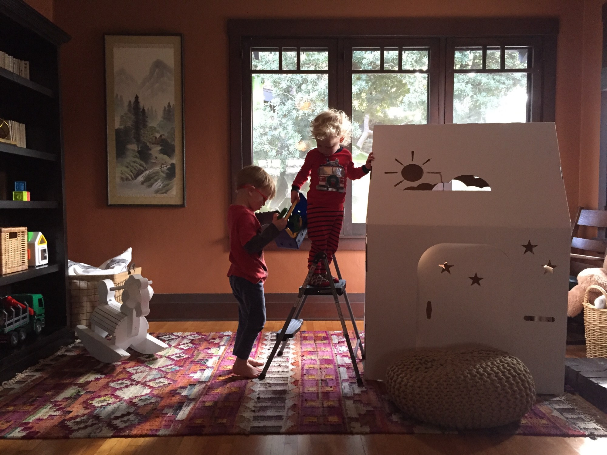 While I pulled out the laundry from the overnight bag and found homes for new toys, I could hear them in the living room, cheerfully working together.